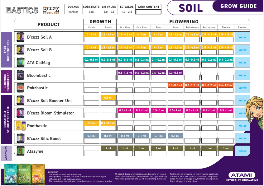 Hier kannst du die Atami Düngeschemen herunterladen. Die Atami Dünger Tabellen zeigen dir alle wichtigen Fakten auf einen Blick.