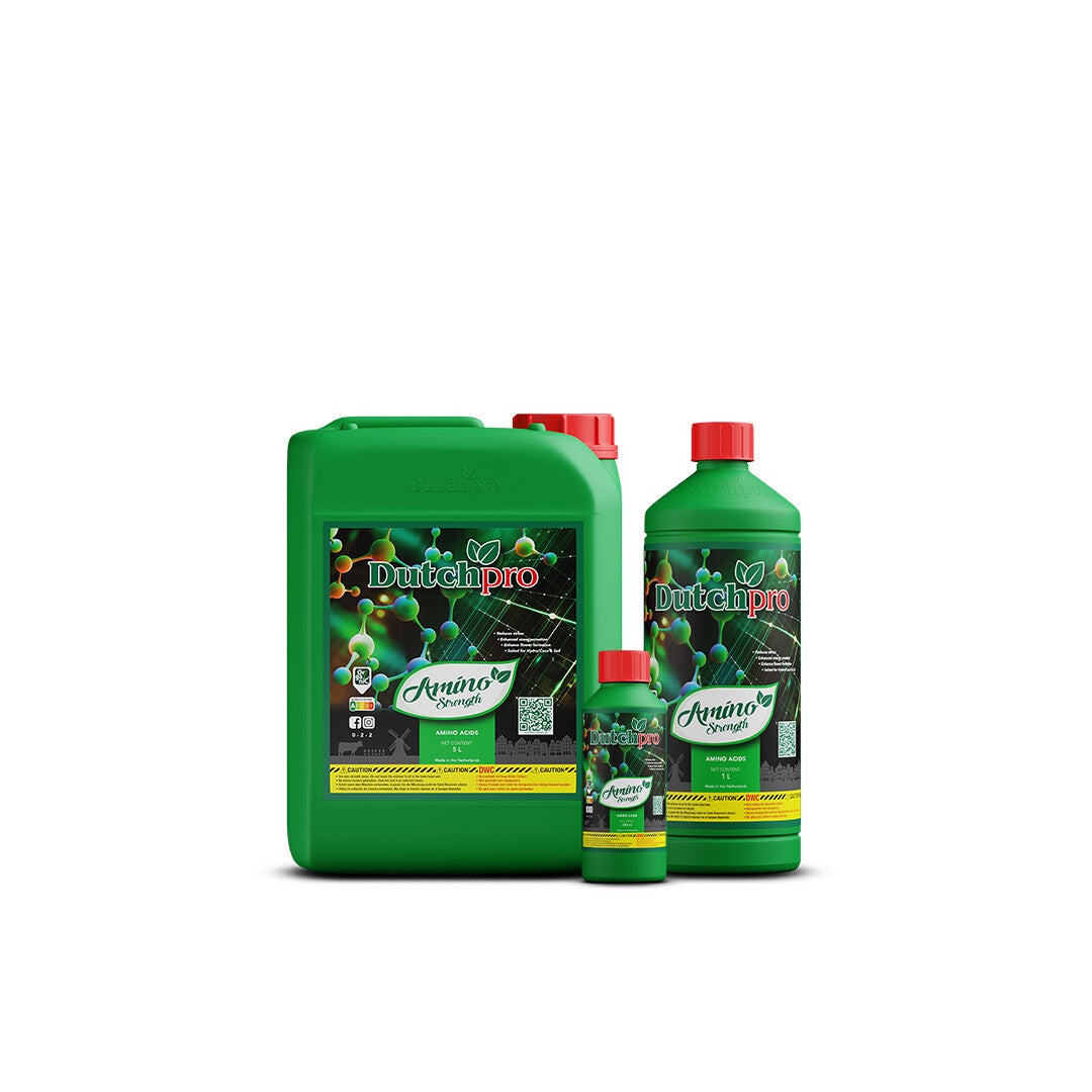 Aminosäuren spielen eine entscheidende Rolle bei der Proteinsynthese, der Chlorophyllproduktion und der Verbesserung der Stressverträglichkeit. Sie unterstützen die Bildung von wichtigen Zellstrukturen und die Aufnahme von Calcium. In stressigen Bedingungen wie Trockenheit oder Schädlingen kann die Pflanze ihre Energie von der eigenen Aminosäureproduktion abziehen. Mit Dutchpro Amino Strength stellen Sie sicher, dass Ihre Pflanzen weiterhin alle notwendigen Nährstoffe aufnehmen können, ohne zusätzlichen Energieaufwand.