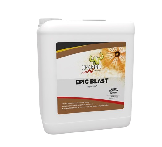 - Verwende Epic Blast als Ergänzung zu Hy-pro Coco A+ B oder jeder anderen Art von Pflanzendünger