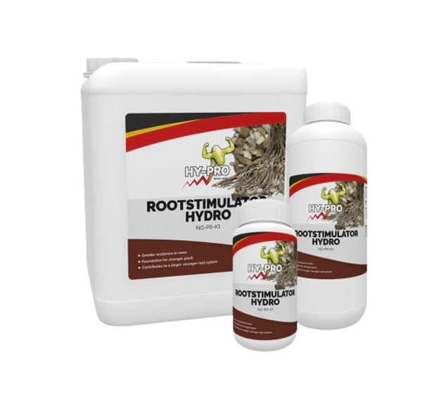 Hy-Pro Hydro Rootstimulator ist ein Nährstoffzusatz für Pflanzen, der das Wurzelwachstum anregt, die Resistenz gegen schädliche Einflüsse erhöht und die Grundlage für ein leistungsstarkes Wachstum schafft. Erreicht wird das durch eine intelligente Kombination verschiedener Nährstoffe, Spurenelemente, nützlichen Bakterien und Vitaminen. Diese Inhaltsstoffe beeinflussen das Substrat und das darin enthaltene mikroorganische Leben. Die Produktion von Zucker und Hormonen wird angekurbelt, was wiederum die feinen Wurzelhärchen und die Wurzeln selbst sprießen lässt.